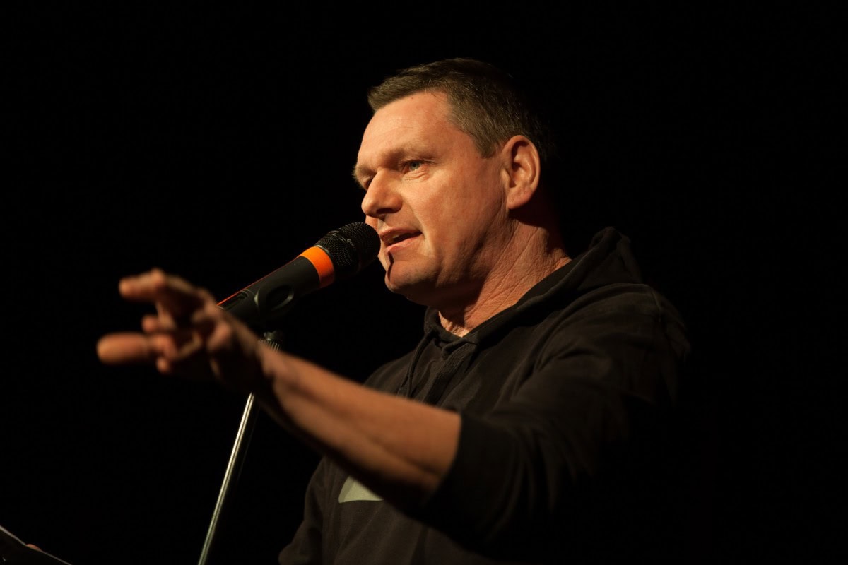 „Seitdem Thomas Schmidt seinen Kindern nicht mehr vorlesen muss, tut er das auf Bühnen. Und weil seine Kinder bereits ziemlich groß sind, macht er Letztes schon ziemlich lange. Zweimal hat er bislang etwas gewonnen in seinem Leben: 1977 beim Kinderpreisausschreiben in der Medizini und 2016 die Fränkischen Poetry Slam -Meisterschaften vor über 1000 Zuschauern im ausverkauften Nürnberger Opernhaus. Er ist seit 2013 Mitglied der Lesebühne „Das Lesen der Anderen, mag Pfefferminztee und freut sich auf seinen Auftritt im Hofgarten-Kabarett in Aschaffenburg.“