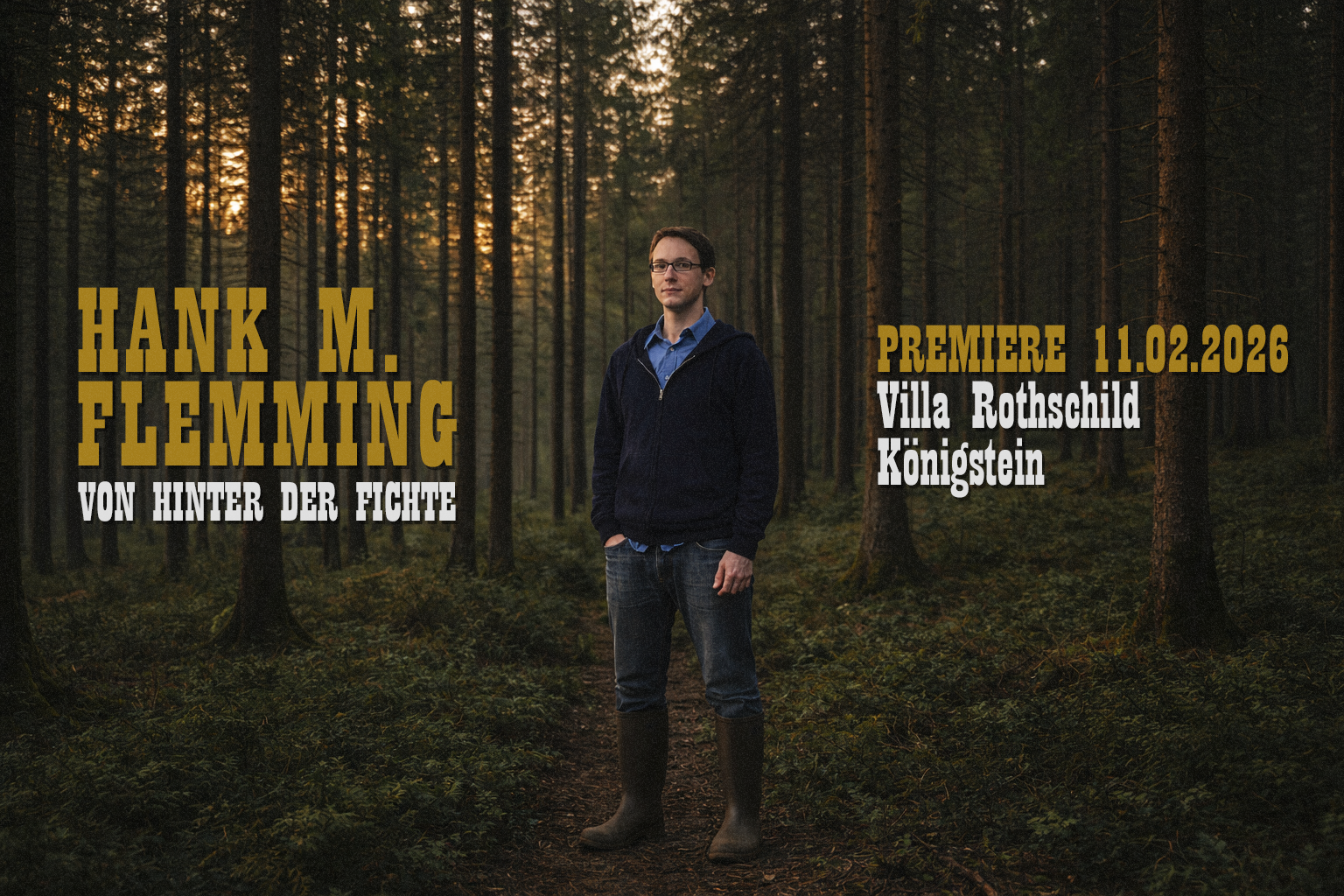 Am 11.02.2026 spielt Hank die Premiere seines Solo Programms „Von hinter der Fichte“ in der Villa Rothschild.